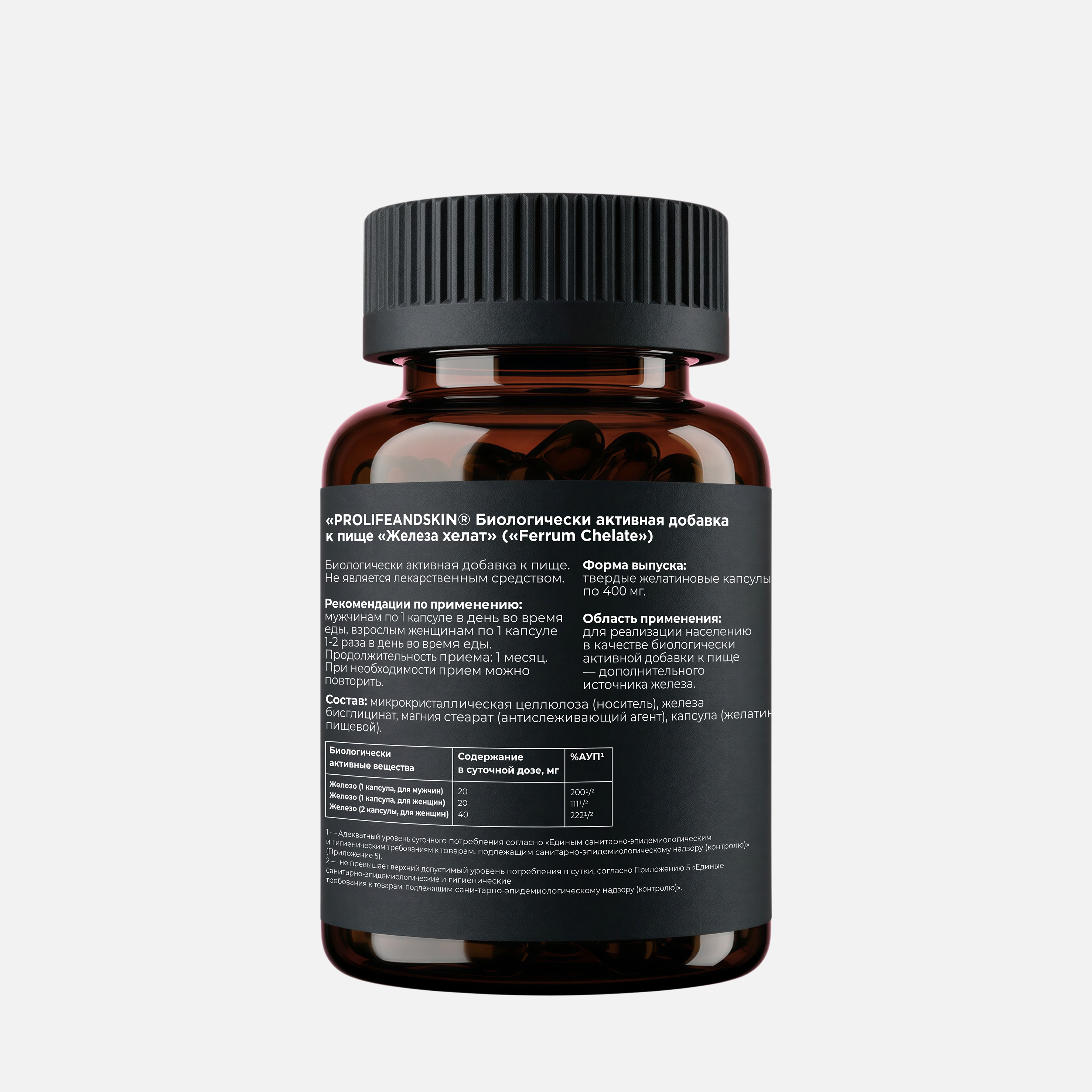 1 капсула содержит 20 мг активного железа, что позволяет точно контролировать поступление минерала в организм.